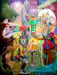 Né en 1957, vit et travaille à Châteaubriant. Au moment de choisir mon orientation au lycée, je voulais aller dans une école d’art à Nantes, mais mes parents n’ayant pas les moyens de me payer un appartement j’ai choisi par défaut le cursus comptabilité. Évidemment, je n’ai pas eu mon Bac. N’ayant que mon BEPC en poche, j’ai donc choisi une formation rapide en menuiserie. J’ai travaillé en entreprise, fait mon service militaire, encore une année dans la même entreprise, puis j’ai décidé de passer le concours des Beaux-Arts de Nantes où j’ai été reçu. Les Beaux-Arts n’étaient pas vraiment ce que je pensais. Je m’attendais à suivre des cours de dessin et de peinture avec un « maître » comme dans les livres que je lisais à cette époque. J’étais un siècle en retard. Je n’avais pas la connaissance de l’art qui se pratiquait à ce moment-là. Les deux premières années m’ont quand même permis de découvrir l’art contemporain. Mais j’étais toujours intéressé par la peinture figurative. Afin de survivre dans cette école, je me suis lancé dans des créations plus « modernes » (Objets composés de carton, plastique, fil de fer, papier aluminium, etc.). J’ai réalisé aussi une performance qui m’a permis de passer dans le cursus « Art » de l’école… Malgré ces années passées aux Beaux-Arts, je me considère comme un peintre autodidacte. J’ai travaillé à partir de 1986 dans une entreprise de sacs et objets publicitaires en tant que graphiste dessinateur sur Mac pendant 10 ans. Attiré par l’informatique, j’ai évolué dans la même entreprise vers la codification et nomenclatures des articles pour enfin développeur et responsable informatique. Pour compenser le côté cartésien de la programmation sur ordinateur, j’ai repris la peinture en 1997 sur mon temps libre, je peins principalement à l’acrylique. Influencé par le surréalisme, la richesse chromatique de Cézanne, l’atmosphère méditative de Rothko ou encore certains travaux de Picasso, mon travail s’inscrit dans une démarche narrative et symbolique. Je puise mon inspiration dans la mythologie, l’actualité. Proche de la figuration libre je cherche à raconter des histoires en y associant des éléments symboliques, dans une quête d’équilibre entre figuration et évocation. Ce qui est passionnant, ce sont les méandres de la pensée qui mènent à la création. Une peinture comme un miroir intérieur, le souffle symbolique d’un peintre visionnaire À travers ces œuvres, le peintre ne raconte pas seulement des histoires : il tisse des visions. Ses toiles nous obligent à voir au-delà de l’image, à sentir la densité des symboles et à accueillir l’ambivalence des émotions. Beauté et inquiétude, innocence et violence, ombre et lumière : tout se mêle dans une danse vibrante. Sa peinture est une invitation à entrer en résonance avec ce qui, en nous, demeure universel et intemporel. Dans l’univers de ce peintre, chaque toile est une porte ouverte sur un monde intérieur où mythes, rêves et réalités se confondent. Les formes semblent jaillir d’un même flux vital, les couleurs éclatent comme des révélations, et les symboles s’entrelacent pour composer une cosmogonie intime et universelle.