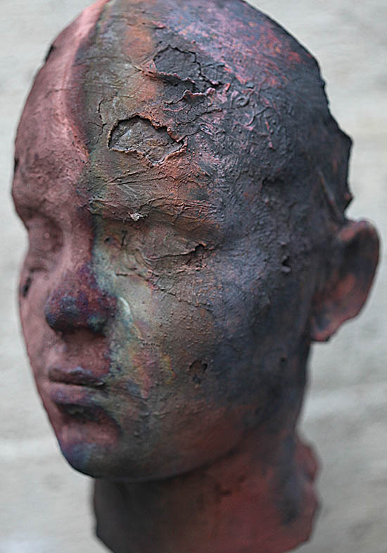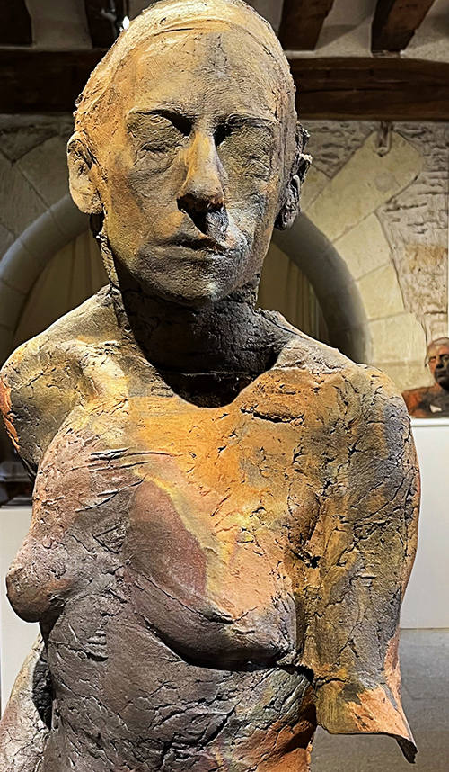 Née en 1962, vit et travaille près de Nantes « Ce qu’il reste des Anges », dit-elle de ses sculptures, empreintes de corps disparus, enfuis. Suspendus, ils flottent irréels, blancs, vides ! Depuis quelques années, Fanny Alloing s’applique à saisir le murmure des Anges. Formes pures, figées, les corps émergent lentement, immaculés, ouverts. La légèreté des matériaux, bandes plâtrées, soie, papier, laisse voir comme de la peau en transparence. L’intérieur autant que l’extérieur, la profondeur révélée derrière l’apparence. Il se dit là quelque chose sur la fragilité de la forme humaine : on chuchote un au-delà de la chair. Abandonnées lors d’un passage sur terre, ces blanches chrysalides ne seraient- elles pas justement l’enveloppe de l’âme ? Sans bruit et avec infiniment de douceur, nous sommes conviés à contempler l’inconnu, le grand vide, l’immensité à laquelle nous appartenons. Et si ces êtres pâles et si beaux nous parlaient simplement de la disparition des corps, de la mort inévitable. Beauté et fragilité du chemin : « Être et disparaître » Cécile Nivet, Ex-directrice de la Galerie « Le Rayon Vert »- Nantes Dans les sculptures de Fanny Alloing, on retrouve le corps, les corps, dont elle dit qu’ils sont « l’expression de l’âme ». Elle nous fait saisir de manière poétique l’instant, la vie, la présence, qu’elle obtient dans un processus créatif intense et complexe. Elle travaille avec des modèles vivants, souvent des danseurs. Mais elle aime aussi choisir des proches ou des personnes rencontrées par hasard, qui la touchent particulièrement. Elle qualifie ces longues séances de pose, au cours desquelles elle fait aussi des photos et des dessins, comme « des moments précieux, hors du temps, fragiles, d’échanges sans les mots, où elle arrive au plus près d’un être … à la recherche de ce que le dehors lui dit du dedans ». Elle crée ainsi des chrysalides grandeur nature en plâtre où elle retrouve l’intention du geste, le détail de la chair, faites de pleins et de vides, impressionnantes, pleines d’humanité. Maintenant, elle travaille la terre. A travers un nouveau processus créatif, encore plus long, encore plus délicat, d’empreinte- l’estampage-, elle réalise des sculptures en raku, d’une grande force, force de la chair, de la matière brute, où les ocres et les bruns de l’alchimie du feu donnent beaucoup d’étrangeté. Fanny Alloing moule des corps qu’elle traite comme des chrysalides, des écorces, des enveloppes humaines vidées de leur substance. Elle estampe ses moulages en plâtre avec de fines couches successives de terre puis les soumet à une cuisson raku. Il en résulte des volumes expressifs mais fantomatiques. Ils semblent avoir souffert de la rude épreuve du feu, laquelle les a abîmés et vidés de leur contenu, tout en conservant leur forme devenue simultanément spectrale et tangible. Il n’en reste plus que la fine écorce, une peau transformée en croûte fragile, protection dérisoire d’une béance désespérante... Métaphore de la condition humaine, de la difficulté de s’affranchir de ses propres limites, les œuvres de Fanny Alloing prennent toute leur signification quand elles sont accompagnées de son triptyque vidéo mettant en scène un corps féminin appliqué à se libérer des bandelettes qui l’enferment. Louis Doucet vice-président de MAC 200