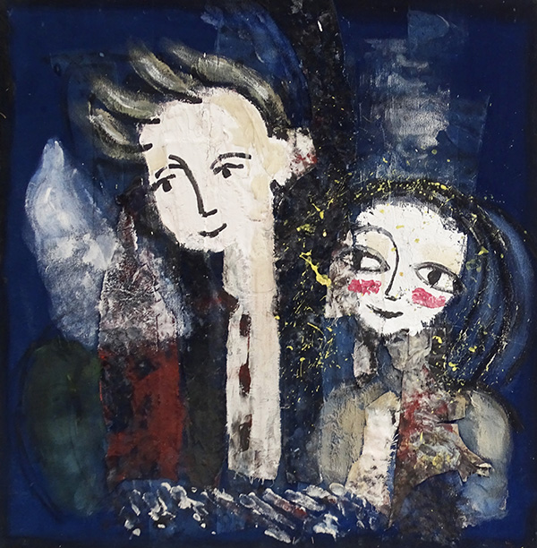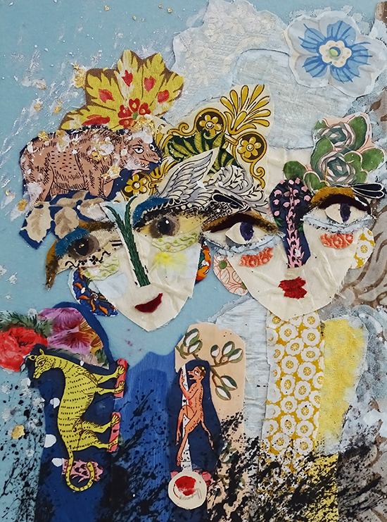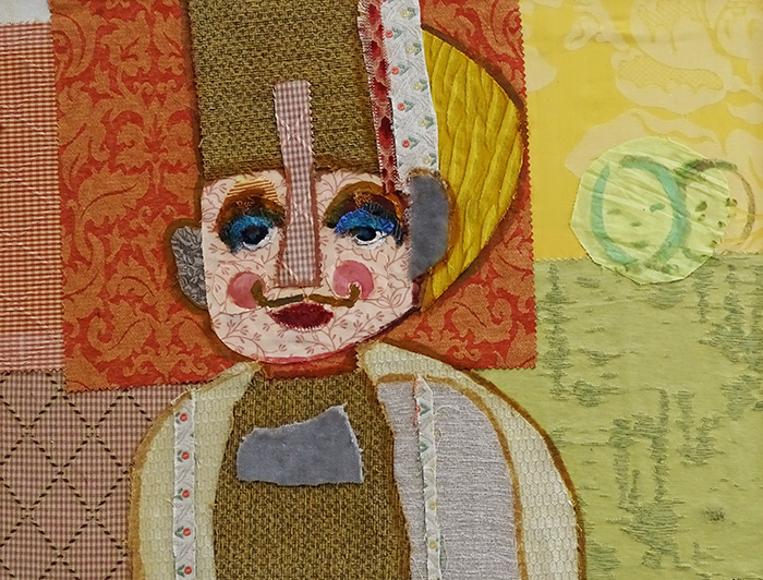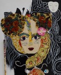 Née en 1967, vit et travaille près d’Angers. Depuis plus de trente ans, Katherine Roumanoff explore le portrait textile comme un espace d’investigation de l’identité et de la mémoire. Installée au bord de la Loire, à proximité d’Angers, elle développe une œuvre qui interroge la façon dont la matière, les motifs et les textures traduisent nos histoires visibles et invisibles. Designer de formation, également autrice et illustratrice, elle a trouvé dans le tissu un médium plastique qui dépasse l’ornement pour devenir langage et mémoire. Cette relation intime au textile remonte à l’enfance, imprégnée par les étoffes orientales que ses parents importaient dans les années 1970. Ces surfaces chargées de motifs répétitifs, de symétries et d’arabesques l’ont initiée très tôt à un monde visuel où chaque fragment porte une histoire et accompagne les êtres humains dans leur quotidien. La création de costumes de théâtre, quelques années plus tard, lui a révélé la puissance de la matière textile dans la construction et l’expression d’une identité et l’incarner scéniquement. Dans ses portraits, l’artiste compose sans dessin préalable, à la façon de Matisse avec ses papiers découpés, elle découpe directement dans la matière. En juxtaposant les étoffes, elle laisse surgir une figure qu’elle assemble par collage. Chaque matériau — velours, soie, jacquard, toile de Jouy, brocard et cotonnade — agit comme une strate temporelle et culturelle. Le textile devient à la fois fragment d’histoire, trace artisanale et support symbolique. Le visage, lieu de projection identitaire par excellence, se constitue alors dans une tension entre hétérogénéité et unité, dispersion et recomposition. « Quand je crée, je suis sans doute proche d’un état de transe : j’ai la sensation de me laisser guider par les matières, les motifs, les couleurs. L’hypnose m’a aussi permis d’approfondir ma connaissance des mécanismes de l’inconscient, des mémoires enfouies, des blessures transgénérationnelles. Le visage révèle ce qui ne peut se dire, ce que l’on cache. Il parle malgré nous des peurs, des désirs et des forces invisibles qui nous traversent et nous façonnent. Il en dit plus que ce dont nous avons conscience. Ce qui m’intéresse, c’est d’inscrire sur la toile l’instant dense et fugitif où l’âme s’échappe. L’aspect psychologique réside dans ma nature profonde. En mettant en scène des personnages, seul à seul, en relation avec la nature, avec eux-mêmes, ou à deux, je m’intéresse à la relation que l’on entretient avec soi-même, à nos dialogues intérieurs, à nos hésitations du cœur. Je cherche à révéler, à dévoiler le mystère de nos fonctionnements. J’espère que de mes œuvres se dégage une certaine beauté, celle de l’harmonie, de l’apaisement, de la sérénité, ainsi qu’une poésie, celle du plaisir d’exister dans une ouverture au monde. C’est ce que je souhaite à tous : que chacun et chacune se glisse à l’intérieur de lui-même et accepte sa propre multitude, sa richesse intérieure infinie et que cette acceptation ouvre toutes les portes. »