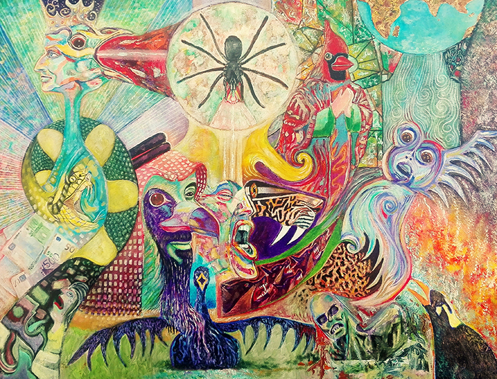 Né en 1957, vit et travaille à Châteaubriant. Au moment de choisir mon orientation au lycée, je voulais aller dans une école d’art à Nantes, mais mes parents n’ayant pas les moyens de me payer un appartement j’ai choisi par défaut le cursus comptabilité. Évidemment, je n’ai pas eu mon Bac. N’ayant que mon BEPC en poche, j’ai donc choisi une formation rapide en menuiserie. J’ai travaillé en entreprise, fait mon service militaire, encore une année dans la même entreprise, puis j’ai décidé de passer le concours des Beaux-Arts de Nantes où j’ai été reçu. Les Beaux-Arts n’étaient pas vraiment ce que je pensais. Je m’attendais à suivre des cours de dessin et de peinture avec un « maître » comme dans les livres que je lisais à cette époque. J’étais un siècle en retard. Je n’avais pas la connaissance de l’art qui se pratiquait à ce moment-là. Les deux premières années m’ont quand même permis de découvrir l’art contemporain. Mais j’étais toujours intéressé par la peinture figurative. Afin de survivre dans cette école, je me suis lancé dans des créations plus « modernes » (Objets composés de carton, plastique, fil de fer, papier aluminium, etc.). J’ai réalisé aussi une performance qui m’a permis de passer dans le cursus « Art » de l’école… Malgré ces années passées aux Beaux-Arts, je me considère comme un peintre autodidacte. J’ai travaillé à partir de 1986 dans une entreprise de sacs et objets publicitaires en tant que graphiste dessinateur sur Mac pendant 10 ans. Attiré par l’informatique, j’ai évolué dans la même entreprise vers la codification et nomenclatures des articles pour enfin développeur et responsable informatique. Pour compenser le côté cartésien de la programmation sur ordinateur, j’ai repris la peinture en 1997 sur mon temps libre, je peins principalement à l’acrylique. Influencé par le surréalisme, la richesse chromatique de Cézanne, l’atmosphère méditative de Rothko ou encore certains travaux de Picasso, mon travail s’inscrit dans une démarche narrative et symbolique. Je puise mon inspiration dans la mythologie, l’actualité. Proche de la figuration libre je cherche à raconter des histoires en y associant des éléments symboliques, dans une quête d’équilibre entre figuration et évocation. Ce qui est passionnant, ce sont les méandres de la pensée qui mènent à la création. Une peinture comme un miroir intérieur, le souffle symbolique d’un peintre visionnaire À travers ces œuvres, le peintre ne raconte pas seulement des histoires : il tisse des visions. Ses toiles nous obligent à voir au-delà de l’image, à sentir la densité des symboles et à accueillir l’ambivalence des émotions. Beauté et inquiétude, innocence et violence, ombre et lumière : tout se mêle dans une danse vibrante. Sa peinture est une invitation à entrer en résonance avec ce qui, en nous, demeure universel et intemporel. Dans l’univers de ce peintre, chaque toile est une porte ouverte sur un monde intérieur où mythes, rêves et réalités se confondent. Les formes semblent jaillir d’un même flux vital, les couleurs éclatent comme des révélations, et les symboles s’entrelacent pour composer une cosmogonie intime et universelle.