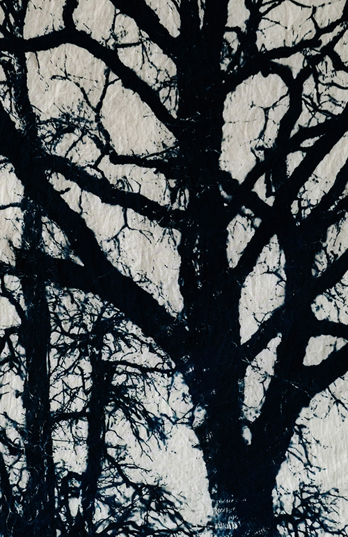 Née en 1971, vit et travaille près de Châteaubriant. J'ai fait des études de lettres, d'architecture (architecte DPLG à Nantes), et d'urbanisme (DESS de Toulouse le Mirail). J'ai passé mon enfance dans la campagne de l'agglomération rennaise, puis ai habité à Rennes, Nantes, Marseille et Toulouse pour revenir à Nantes, puis en Sud-Loire (plaine maraichère) et enfin dans la campagne de Châteaubriant. J'ai très peu exercé en tant qu'architecte. En tant qu'urbaniste, j'ai proposé aux collectivités de travailler sur la ville à partir de l'expérience vécue des habitants concernés par le projet urbain, ce à l'aide d'interventions d'artistes de tous les domaines (photographie, son, théâtre, arts plastiques etc.). Bien qu'ayant toujours pratiqué les arts plastiques (collage, photographie, dessin, peinture, modelage), c'est cette expérience qui m'a décidée à quitter le monde de la ville et de la construction pour m'impliquer pleinement dans les arts plastiques, toujours à partir de récits de vie. Je suis inscrite à la Maison des Artistes depuis mai 2010. Je pratique le dessin (encre de chine surtout), la sérigraphie sur papier-peint, la photographie, la broderie machine, la cyanographie sur tissu. Cyanotypes La cyanographie est un procédé photographique ancien, qui met en œuvre d'autres produits photosensibles que la photographie argentique… Je réalise des cyanotypes sur tissu à partir de photos que j'ai prises dans la campagne de Châteaubriant. Je travaille les photographies sur informatique puis je génère des négatifs que j'applique ensuite sur des tissus auparavant trempés dans la solution photosensible puis séchés à l'ombre. Je ne travaille pas avec la lumière du soleil, qui est très aléatoire et surtout insuffisante en hiver sous nos latitudes. Je travaille avec une insoleuse qui génère de puissants UV. Broderies Je brode à la machine à coudre, en utilisant le point le plus simple, de la même manière que j'utiliserais un crayon, la couture devenant un trait fin que je répète en allers et retours jusqu'à obtenir le motif désiré. J'y mets en relation la toile de Jouy, représentant des scènes riches et convenues, avec des formes d'alliens, qui viennent brutaliser et contredire l'harmonie qui semblait régner dans le motif initial. D'une certaine manière, je fais intervenir une « inquiétante étrangeté » dans la prétendue paix de nos conforts bourgeois. Sérigraphies sur papier-peint La sérigraphie est un procédé d'impression qui est accessible à l'artisanat, bien qu'il puisse aussi être réalisé de façon industrielle. C'est une technique qui met en œuvre des produits photosensibles, afin de réaliser un pochoir sur une toile tramée tendue sur un cadre (qu'on appelle « écran »). Je crée des sérigraphies sur papier-peint afin de faire dialoguer ce qui ressort de nos intimités (le papier-peint collé sur nos murs « voit » se dérouler nos gestes quotidiens et intimes) avec, d'une part nos rêves de « réussite » et nos prétentions (posséder une maison et l'exposer à la vue de tous), d'autre part le caractère indomptable de la vie (les arbres). Pour réaliser chacune de ces quatre sérigraphies en deux couleurs, deux passages ont été nécessaires.